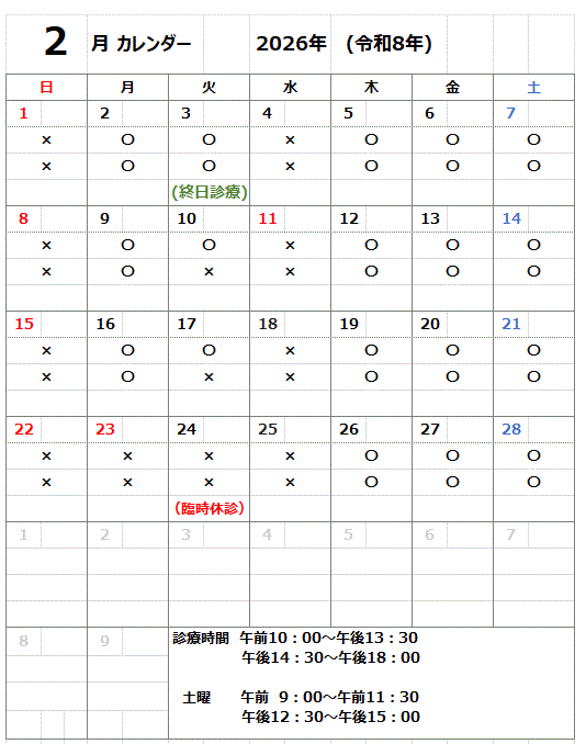 2026年2月診療予定
